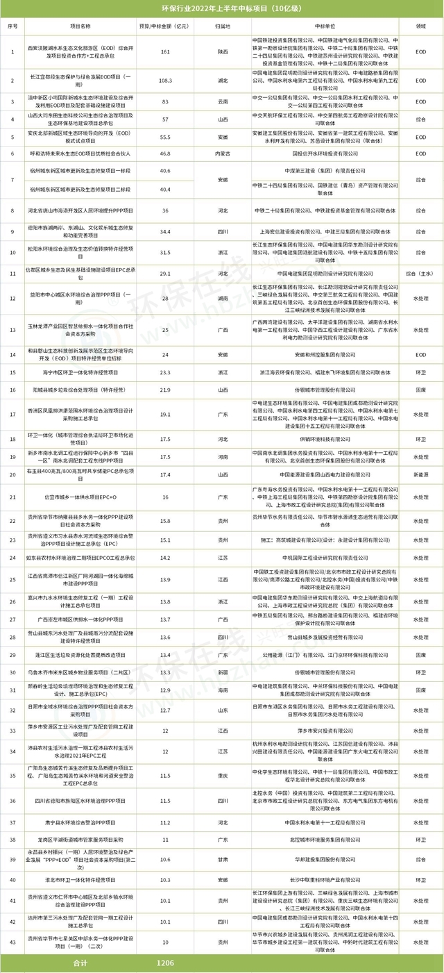 2022年行程過半,上半年的龍爭(zhēng)虎斗也有了半程賽結(jié)果。環(huán)保在線特盤點(diǎn)了上半年10億級(jí)環(huán)保項(xiàng)目,粗略統(tǒng)計(jì)約有43個(gè),總投資超過1200億。