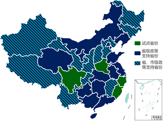 注:深藍(lán)色表示省級(jí)政策支持,淺藍(lán)色表示市級(jí)政策支持,淺灰色表示區(qū)級(jí)政策支持