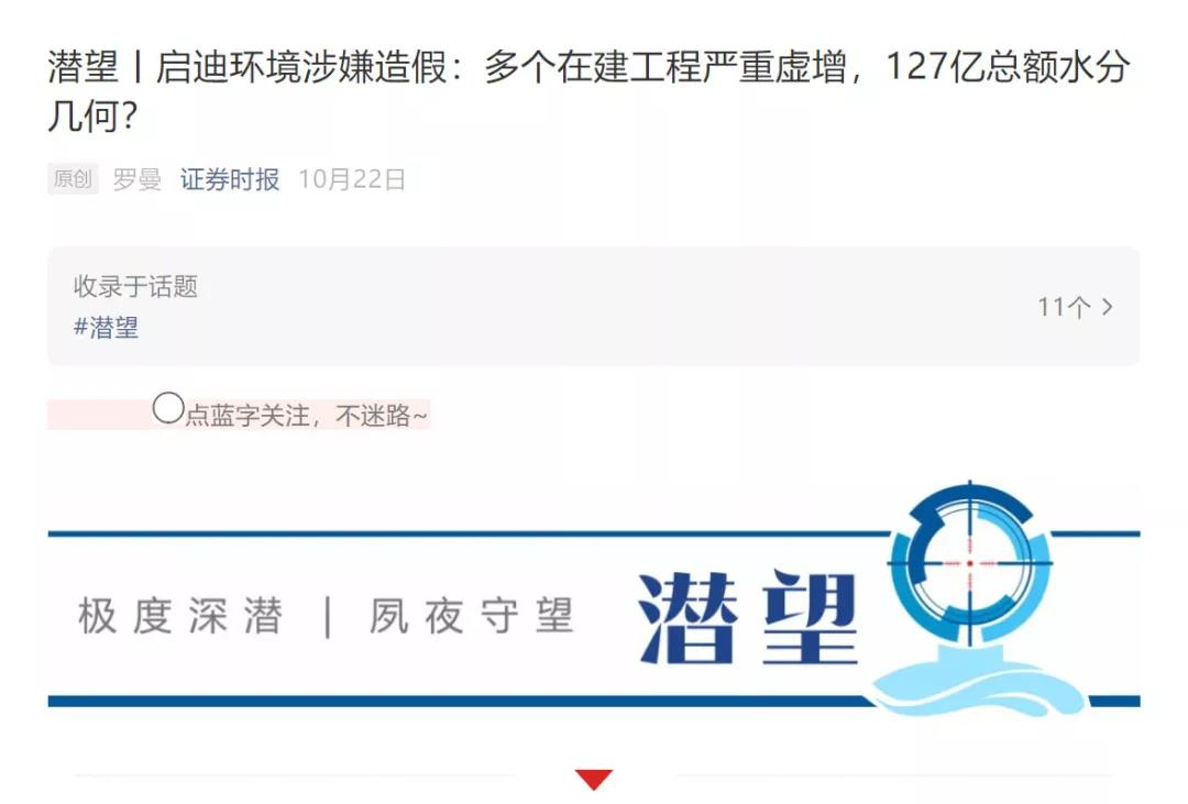 由此,也招致了媒體對于啟迪環(huán)境“涉嫌造假”的質(zhì)疑。20211022日,人民日報旗下的《證券時報》發(fā)表文章《啟迪環(huán)境涉嫌造假:多個在建工程嚴重虛增,127億總額水分幾何?》,對啟迪環(huán)境發(fā)出質(zhì)疑。