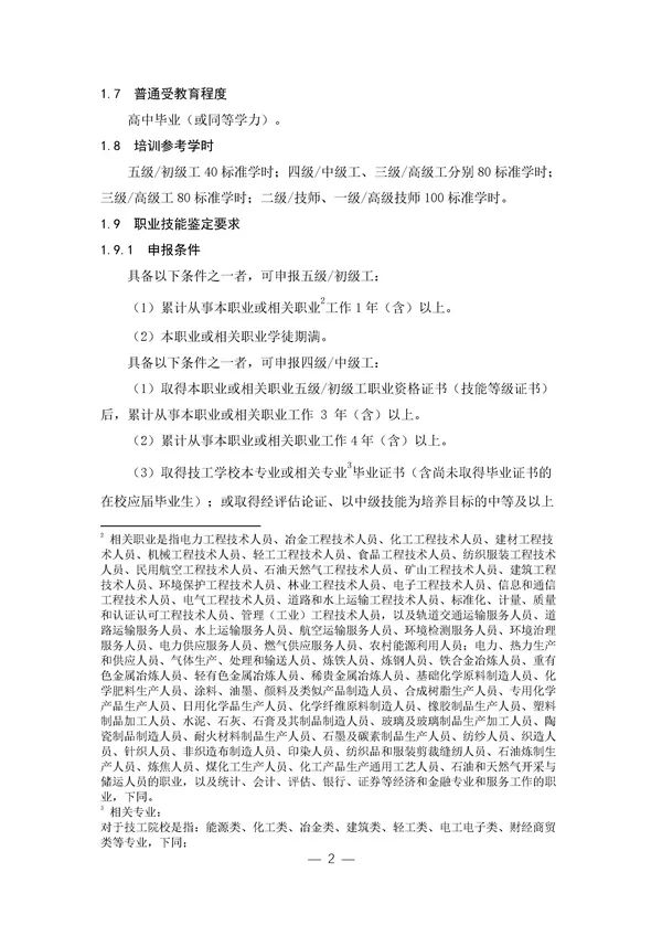 其中碳排放監(jiān)測員、碳排放核算員、碳排放核查員、碳排放交易員、民航碳排放管理員等五個工種共設(shè)五個等級,分別為:五級/初級工、四級/中級工、三級/高級工、二級/技師、一級/高級技師。其中,五級/初級工不分工種,統(tǒng)稱碳排放管理員五級/初級工。碳排放咨詢員共設(shè)三個等級,分別為:三級/高級工、二級/技師、一級/高級技師。五級/初級工40標(biāo)準(zhǔn)學(xué)時;四級/中級工、三級/高級工分別80標(biāo)準(zhǔn)學(xué)時;三級/高級工80標(biāo)準(zhǔn)學(xué)時;二級/技師、一級/高級技師100標(biāo)準(zhǔn)學(xué)時。