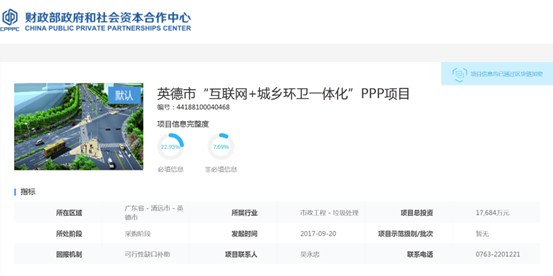 廣東省政府采購網(wǎng)消息,近日,英德市城市管理和綜合執(zhí)法局發(fā)布2022年08月至2022年10月政府采購意向,英德市“互聯(lián)網(wǎng)+城鄉(xiāng)環(huán)衛(wèi)一體化”PPP項目計劃于2022年10月份開展政府采購。