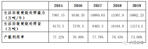 表 2近5年全國生活垃圾焚燒項(xiàng)目產(chǎn)能及利用情況