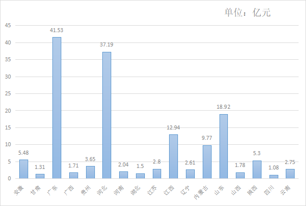 2、山東迎來小高潮,廣東、河北繼續(xù)領(lǐng)跑!8月,安徽、甘肅、廣東、廣西、貴州、河北、河南、湖北、江蘇、江西、遼寧、內(nèi)蒙古、山東、山西、陜西、四川和云南17個省份都有億級環(huán)衛(wèi)項(xiàng)目開標(biāo)。項(xiàng)目數(shù)量上,河北(6)、廣東(5)、山東(4)分列前三位;項(xiàng)目金額上,仍是廣東、河北和山東排在前列,金額分別為41.53億元、37.19億元和18.92億元。