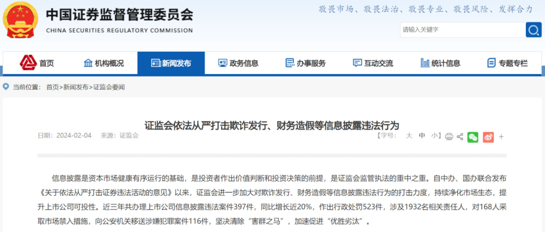 就在上個月,1月7日晚間,興源環(huán)境公告收到《行政處罰決定書》,因全資子公司存在虛增項目收入及成本等情況,導致公司財務數據存在虛假記載,興源環(huán)境及公司財務總監(jiān)分別被罰。《行政處罰決定書》顯示,興源環(huán)境的全資子公司——杭州中藝生態(tài)環(huán)境工程有限公司(下稱“中藝生態(tài)”)于2016年、2017年在長興縣美麗城鎮(zhèn)(標段一、標段二)PPP項目、溫州洞頭區(qū)本島海洋生態(tài)廊道整治修復工程PPP項目中存在虛增項目收入及成本等情況,導致興源環(huán)境2016年至2022年年報財務數據及相關披露存在虛假記載。浙江證監(jiān)局決定,對興源環(huán)境責令改正,給予警告,并處以200萬元罰款;對公司財務總監(jiān)孫穎給予警告,并處以80萬元罰款。事實上,興源環(huán)境接受處罰多少有點“冤枉”,因為此次導致處罰的中藝生態(tài)是興源環(huán)境收購而來的,2016年才納入合并報表,當時雙方還簽署了業(yè)績承諾補償協(xié)議。這次虛增項目收入的事件爆發(fā)后,興源環(huán)境也表示,將高度重視業(yè)績承諾補償的追討工作,擬安排專門隊伍并聘請專業(yè)機構進行研判,切實推動相關工作有效開展。還有此前曾被媒體曝出過“財務造假”的啟迪環(huán)境。2023年9月,湖北證監(jiān)局官網披露,因信息披露違法,對啟迪環(huán)境給予警告并處罰款60萬元,對時任董事長文一波等4位相關責任人給予警告并處罰款30萬元。調查顯示,啟迪環(huán)境在2017年-2018年間,通過偽造虛假分包合同及節(jié)點結算單確認成本,虛構了相關PPP項目(向社會資本開放的基礎設施建設和公共服務項目)合同完工百分比,提前確認或虛假確認總包合同收入,導致啟迪環(huán)境2017、2018年年報中主營業(yè)務收入、主營業(yè)務成本等項目存在虛假記載。2023年7月,龍凈環(huán)保收到中國證監(jiān)會福建監(jiān)管局的行政處罰決定書,認定ST龍凈未按規(guī)定披露關聯(lián)交易,決定對公司給予警告,并處以一百萬元罰款。還有幾位相關責任人分別給予了警告和數額不等的罰款。再往前一個月,2023年6月,美尚生態(tài)也曾收到中國證監(jiān)會的行政處罰決定書,認定美尚生態(tài)2015年公司招股說明書、2015年至2019年年報、2020年半年報、2016年非公開發(fā)行股份及支付現金購買資產并募集配套資金暨關聯(lián)交易報告書、2017年面向合格投資者公開發(fā)行公司債券募集說明書等信息披露文件存在虛假記載,決定對其責令改正,給予警告,并處以1330萬元罰款。更早以前,卓錦股份于2023年5月,*ST科林于2023年2月,也曾分別收到過證監(jiān)部門的處罰決定書,責令改正,給予警告,并處以一定數額的罰款。*ST科林的兩位相關當事人杜簡丞、李根旺還被分別采取了3年證券市場禁入措施。證監(jiān)會嚴打財務造假