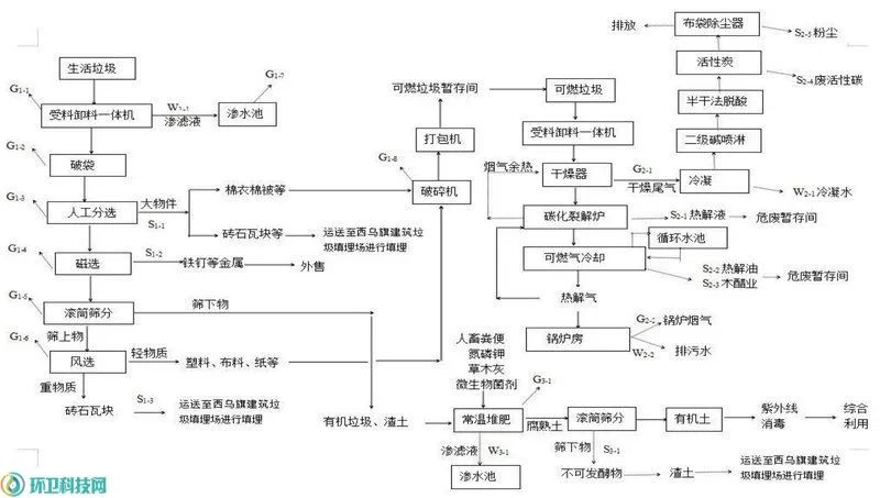 環(huán)境局網(wǎng)站上的公開(kāi)資料顯示,這座生活垃圾處理項(xiàng)目位于西烏珠穆沁旗巴拉嘎?tīng)柛呃真?zhèn)西南側(cè)5.5km處,原計(jì)劃采用熱解工藝,主要建設(shè)一座“生活垃圾資源化處理廠及其附屬設(shè)施工程,購(gòu)置生活垃圾處理設(shè)備”,建成后可日處理生活垃圾200噸,主要產(chǎn)品為碳化裂解爐熱解產(chǎn)生的熱解氣467.2萬(wàn)m3/a和生活垃圾有機(jī)土(常溫)32850t/a。項(xiàng)目總投資6860萬(wàn)元,資金來(lái)源為地方債券和上級(jí)專項(xiàng)資金。其中,環(huán)保投資398萬(wàn)元,占總投資的5.80%。計(jì)劃于2020年8月開(kāi)建,2021年12月投產(chǎn)。但至今,項(xiàng)目也只是進(jìn)行了場(chǎng)地平整,尚未建設(shè)投產(chǎn)。關(guān)于變更生活垃圾處理工藝的原因,環(huán)評(píng)文件表示,這是根據(jù)“EPC承包單位多年運(yùn)行經(jīng)驗(yàn)及項(xiàng)目區(qū)域生活垃圾成分復(fù)雜、水分含量高等特點(diǎn),高溫?zé)峤夤に嚿袩o(wú)法有效處理當(dāng)?shù)厣罾饕w現(xiàn)在熱解爐運(yùn)行不穩(wěn)定、排渣不順暢、產(chǎn)生的可燃?xì)怏w成分復(fù)雜、難以有效利用”。因此,建設(shè)單位根據(jù)需求及同類型企業(yè)實(shí)際生產(chǎn)情況,擬將原有生活垃圾熱解工藝變更為生活垃圾焚燒工藝并配套汽輪發(fā)電機(jī)組。變更后,項(xiàng)目將配置1臺(tái)200t/d機(jī)械爐排爐+1臺(tái)14t/h中溫低壓(400℃,2.5MPa)余熱鍋爐+1臺(tái)額定1.2MW的凝汽式汽輪機(jī)+1臺(tái)1.2MW發(fā)電機(jī),年運(yùn)行時(shí)間8000小時(shí),年平均發(fā)電量960×10^4kWh/a,所發(fā)電量全部用于廠內(nèi)自用。項(xiàng)目總投資仍為6860萬(wàn)元,但環(huán)保投資增至872.05萬(wàn)元,占總投資的12.71%。從2020年至今,時(shí)隔4年依舊未動(dòng)工,最終卻由EPC承包單位指出工藝不可行,那這個(gè)胎死腹中的“高溫?zé)峤狻表?xiàng)目究竟是一個(gè)什么樣的處理流程呢?環(huán)評(píng)文件顯示,變更之前,項(xiàng)目生活垃圾綜合利用處理系統(tǒng)由生活垃圾收運(yùn)系統(tǒng)、生活垃圾分選系統(tǒng)、可燃垃圾熱解系統(tǒng)和有機(jī)質(zhì)堆肥發(fā)酵系統(tǒng)四部分組成。其中的垃圾收運(yùn)、垃圾分選和垃圾堆肥基本沒(méi)什么好說(shuō),我們忽略,重點(diǎn)看垃圾熱解這個(gè)核心工藝。環(huán)評(píng)報(bào)告顯示,項(xiàng)目原計(jì)劃配置一臺(tái)碳化裂解爐,該碳化裂解爐可實(shí)現(xiàn)對(duì)含水量不超過(guò)30%、規(guī)格在50-100mm之間的物料進(jìn)行熱解氣化。生活垃圾碳化裂解系統(tǒng)主要包括:干燥脫水系統(tǒng)、碳化裂解系統(tǒng)、出料系統(tǒng)、熱解氣凈化和管網(wǎng)系統(tǒng),其中干燥脫水系統(tǒng)包括:干燥器上料機(jī)、干燥器、干物料儲(chǔ)倉(cāng)等;碳化裂解系統(tǒng)包括:提斗式上料機(jī)、爐頂儲(chǔ)倉(cāng)、密封裝置、螺旋進(jìn)料裝置、高溫密封裝置、反應(yīng)釜、爐體加熱裝置、爐內(nèi)攪拌裝置、攪拌高溫密封裝置、攪拌動(dòng)力裝置、爐內(nèi)余熱回收裝置等;出料系統(tǒng)包括:出料螺旋裝置、出料高溫密封裝置、熱解渣集中出料裝置、熱解氣出氣裝置等;熱解氣凈化和管網(wǎng)系統(tǒng)包括:熱解氣除塵裝置、熱解氣冷卻裝置、真空裝置、水氣分離裝置、木醋液與裂解油分離裝置等。根據(jù)廠家前期測(cè)試數(shù)據(jù),一噸可燃垃圾可產(chǎn)氣200m3,產(chǎn)渣30kg,產(chǎn)木醋液40kg,產(chǎn)焦油2kg,垃圾熱解率為3%。本裝置將物料一次性或連續(xù)性加入反應(yīng)釜內(nèi)進(jìn)行熱解氣化,生成可燃?xì)怏w為混合氣體,主要含有一氧化碳、氫氣、甲烷等。在反應(yīng)釜內(nèi)由上向下通過(guò)羅茨鼓風(fēng)機(jī)將氣體輸送至管網(wǎng)。鑒于生物質(zhì)氣所含的主要雜質(zhì)是焦油和灰塵,本項(xiàng)目采用“旋風(fēng)除塵器”、“熱交換器”、“氣液分離器”等對(duì)熱解氣進(jìn)行凈化處理,除掉灰塵和焦油等物質(zhì)。基本生產(chǎn)流程是:可燃垃圾→干燥脫水→碳化裂解→旋風(fēng)除塵→冷卻→氣液分離→阻火→管網(wǎng)→阻火→供氣。熱解產(chǎn)生的熱解氣中約1/3直接用作碳化裂解爐作燃料,剩余約2/3通過(guò)地下輸配系統(tǒng)輸送到各用氣設(shè)備,多余燃?xì)膺M(jìn)入火炬燃燒系統(tǒng)。變更前項(xiàng)目生活垃圾處理工程工藝流程如圖1。自從2022年12月,國(guó)家發(fā)改委、住建部、生態(tài)環(huán)境部等五部委聯(lián)合印發(fā)《關(guān)于加強(qiáng)縣級(jí)地區(qū)生活垃圾焚燒處理設(shè)施建設(shè)的指導(dǎo)意見(jiàn)》,明確要求“以中西部和東北地區(qū)、邊境地區(qū)為重點(diǎn),選取人口密度較低、垃圾產(chǎn)生量較少的部分縣級(jí)地區(qū)積極開(kāi)展小型焚燒試點(diǎn)”之后,國(guó)內(nèi)一度出現(xiàn)一股使用熱解工藝的“小型垃圾焚燒項(xiàng)目”,但對(duì)此工藝的爭(zhēng)議卻一直頗多,焦點(diǎn)就在于熱解到底是否適于處理生活垃圾?熱解,作為一個(gè)誕生于19世紀(jì)的技術(shù),最初是用于煤化工,缺乏油氣資源的德國(guó)人采用熱解工藝處理煤炭,獲取燃油、燃?xì)獾犬a(chǎn)品。后來(lái),人們?cè)谔幚韽U舊塑料、廢輪胎等橡膠制品、醫(yī)療廢物及農(nóng)林生物質(zhì)等固廢時(shí),也采