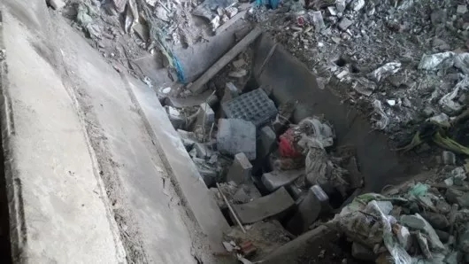 圖片說(shuō)明:“漏斗”旁,抓斗車(chē)正在把大塊垃圾揀出來(lái)