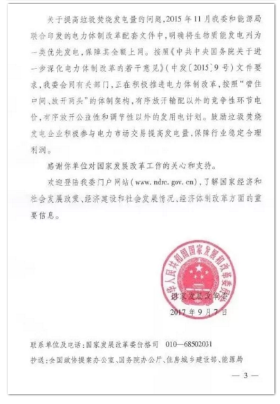 發(fā)改委答復(fù)《關(guān)于適度提高垃圾焚燒折算電量的提案》