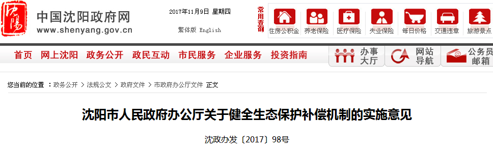 《沈陽市關(guān)于健全生態(tài)保護(hù)補(bǔ)償機(jī)制的實(shí)施意見》