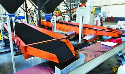 劉晶介紹,眼前的生產(chǎn)線為膠粉常溫破碎生產(chǎn)線,由口圈機、破碎機、破膠機、破膠機輔機和磁選機等幾個部分組成,生產(chǎn)線“吃進去”輪胎之后首先由口圈機分離出口圈,然后整個輪胎進入破碎機被連續(xù)粉碎,再經(jīng)由破膠機及輔機篩分成膠粉,其中,輪胎中的廢鋼絲被磁選機“吸”出來。