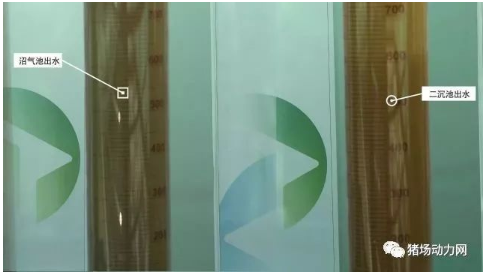 沼氣池與二沉池水顏色對(duì)比