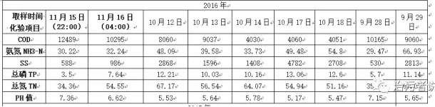 高濃度的工業(yè)廢水對污水廠的主要沖擊作用就是對微生物處理系統(tǒng)的沖擊影響,微生物處理系統(tǒng)由于是由大量的有機(jī)生命體組成的處理系統(tǒng),它們對污水廠所提供的生存條件的要求是很苛刻的,它們需要在一定的溫度,水質(zhì)濃度,氧氣供給等等的條件下,才能良好的生存和作用。工業(yè)廢水的水質(zhì)濃度極高,COD值一般能達(dá)到上萬,這是某生活污水廠對進(jìn)入廠區(qū)的工業(yè)廢水的化驗結(jié)果。