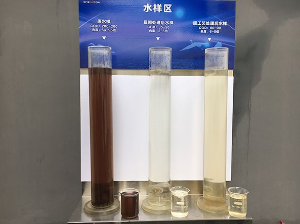 據(jù)介紹,基于半年多的穩(wěn)定運(yùn)行,該示范項(xiàng)目處理效果顯著:出水COD在60mg/L以內(nèi),色度10倍以下,不返色,無二次污染,出水水質(zhì)穩(wěn)定,達(dá)到直排標(biāo)準(zhǔn)。