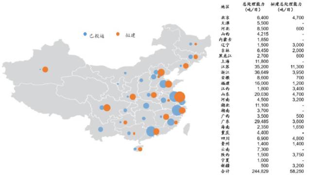 圖2 2016年底中國在運(yùn)行垃圾焚燒發(fā)電項(xiàng)目