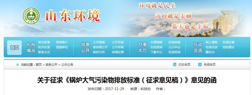 為加強(qiáng)我省鍋爐大氣污染防治,促進(jìn)全省大氣環(huán)境質(zhì)量持續(xù)改善,根據(jù)國(guó)家和我省關(guān)于強(qiáng)制性標(biāo)準(zhǔn)整合精簡(jiǎn)工作的要求,我廳組織對(duì)《山東省鍋爐大氣污染物排放標(biāo)準(zhǔn)》(DB37/2374—2013)進(jìn)行了修訂,現(xiàn)已完成標(biāo)準(zhǔn)文本征求意見稿。根據(jù)國(guó)家和我省環(huán)境保護(hù)標(biāo)準(zhǔn)制修訂工作有關(guān)規(guī)定,現(xiàn)將標(biāo)準(zhǔn)文本征求意見稿和修訂說明發(fā)給你們,請(qǐng)研究并提出書面修改意見,于2017年12月10日前反饋我廳,逾期視為無意見。