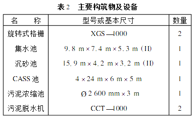 污水處理廠主要構(gòu)筑物及設備示于表2。