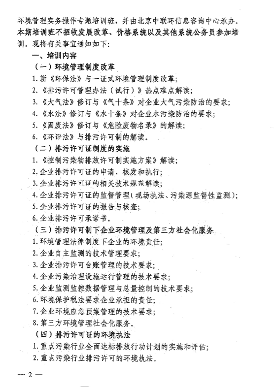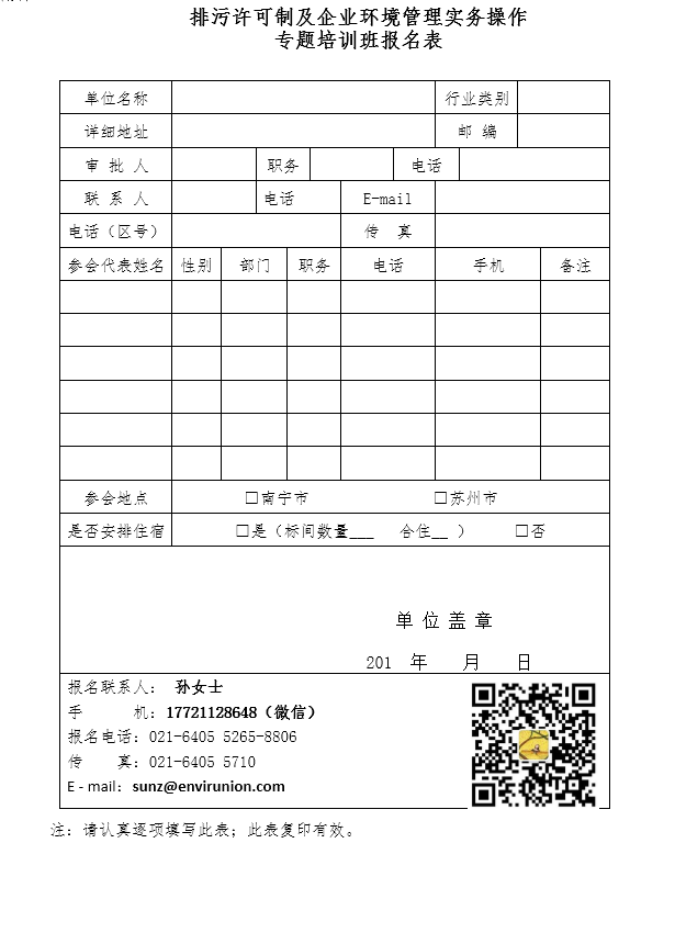 附件:關(guān)于舉辦排污許可制及企業(yè)環(huán)境管理實務(wù)操作專題培訓(xùn)班報名表