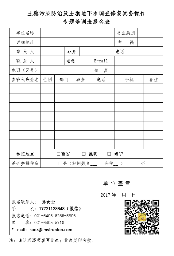 附件:土壤污染防治及土壤地下水調(diào)查修復(fù)實務(wù)操作專題培訓(xùn)班報名表