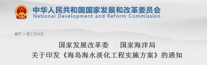 發(fā)改委印發(fā)《海島海水淡化工程實(shí)施方案》