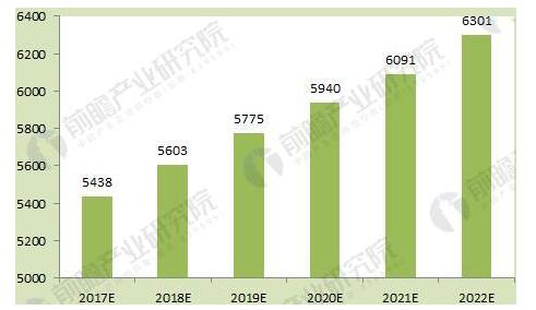 圖表4:2017-2022年廢紙回收利用規(guī)模預(yù)測(cè)(單位:萬(wàn)噸)