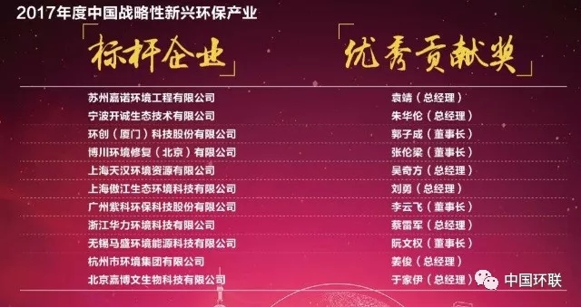 2017年度中國戰(zhàn)略性新興環(huán)保產(chǎn)業(yè)標(biāo)桿企業(yè)與優(yōu)秀貢獻(xiàn)獎(jiǎng)