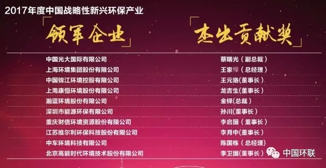2017年度中國戰(zhàn)略性新興環(huán)保產(chǎn)業(yè)領(lǐng)軍企業(yè)與杰出貢獻(xiàn)獎(jiǎng)