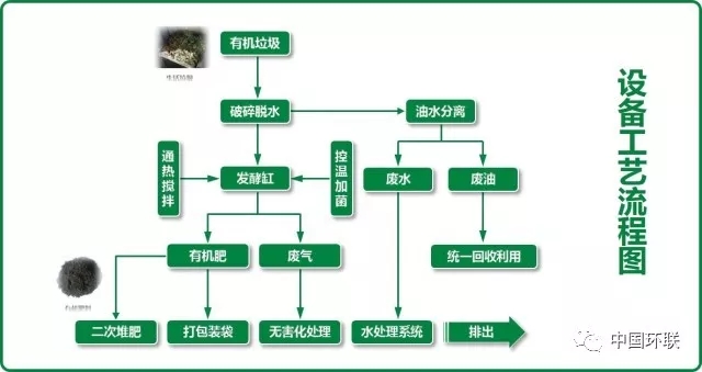 工藝流程為農村生活垃圾經過分類收集后,經過人工分選,破碎,脫水后進入發(fā)酵箱進行高溫快速好氧堆肥,生成有機肥。