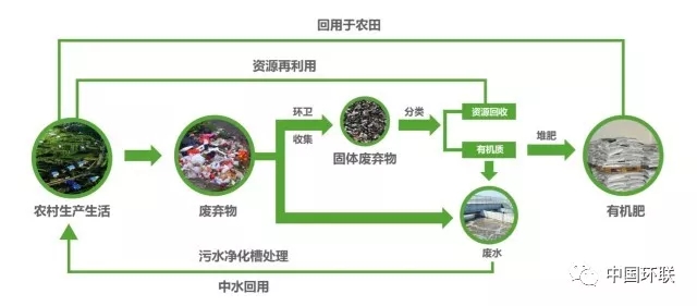 農村環(huán)境綜合整治示意圖,農村生產生活中產生的廢棄物、污染物主要就分固體廢棄物垃圾和污水兩塊。