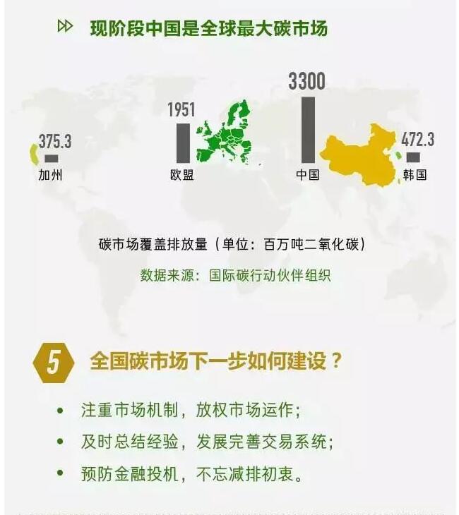 12月19日,國家發(fā)改委副主任張勇在全國碳排放交易體系啟動工作新聞發(fā)布會上表示,經(jīng)國務(wù)院同意,國家發(fā)改委印發(fā)了《全國碳排放權(quán)交易市場建設(shè)方案(發(fā)電行業(yè))》,標志著中國全國碳排放交易體系已完成總體設(shè)計并正式啟動。下面,通過一張圖《五步了解碳市場》。