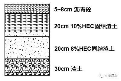 根據(jù)劉勇先生介紹,在上海世博會項目中,傲江公司主要提供HEC高強(qiáng)高耐水土體固結(jié)劑,用于固結(jié)一般土體、特殊土體、砂石集料和工業(yè)廢渣。在世博園區(qū)內(nèi)的施工便道中應(yīng)用,便道長度3km。路面結(jié)構(gòu)為二層8~10%HEC固結(jié)土(40cm),上面直接鋪設(shè)5~8cm瀝青砼面層,開放交通供上鋼三廠的重型卡車行駛,效果良好。
