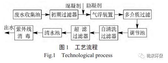 經(jīng)過初步過濾的淋洗廢水先經(jīng)過混凝氣浮作用,使淋洗廢水中污染物的含量大幅度降低,COD、LAS、NH4+-N、濁度的去除率均可達(dá)到90%以上。再經(jīng)過過濾、消毒處理,保證水質(zhì)達(dá)到回用標(biāo)準(zhǔn)。