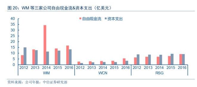 從自由現(xiàn)金流角度看,由于環(huán)衛(wèi)龍頭公司擁有較強定價能以及美國環(huán)衛(wèi)行業(yè)已經(jīng)走過資本支出高峰,目前美國環(huán)衛(wèi)龍頭公司的現(xiàn)金流創(chuàng)造能力極強,造血能力突出。三家環(huán)衛(wèi)龍頭的自由現(xiàn)金流全部為正且規(guī)模龐大,有大量現(xiàn)金可以向股東分紅,高股息率;此外,三家公司的自由現(xiàn)金流基本能覆蓋下一年的資本支出,在擴張及外延并購時基本不依賴外部融資。