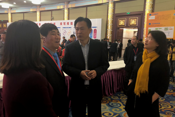 中國(guó)建筑材料聯(lián)合會(huì)、水泥協(xié)會(huì)喬龍德會(huì)長(zhǎng)和科技部社會(huì)發(fā)展科技司鄧小明副司長(zhǎng)參觀海螺創(chuàng)業(yè)展板