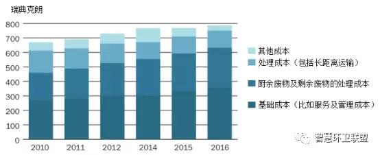 圖16. 瑞典2010~2016年期間的人均廢物管理費(fèi)用