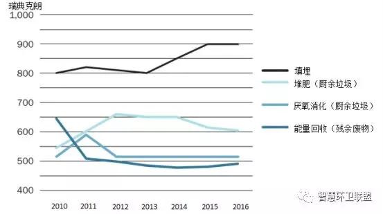 圖17. 瑞典2010~2016年期間的每噸廢物的處置費(fèi)