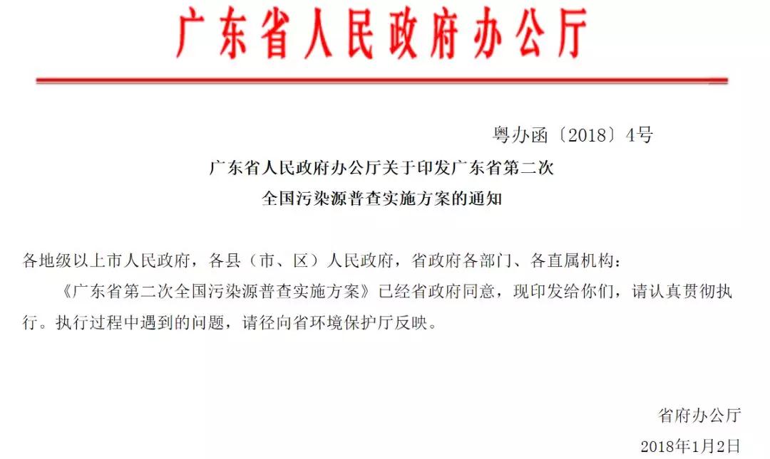 廣東省第二次全國(guó)污染源普查實(shí)施方案