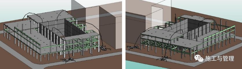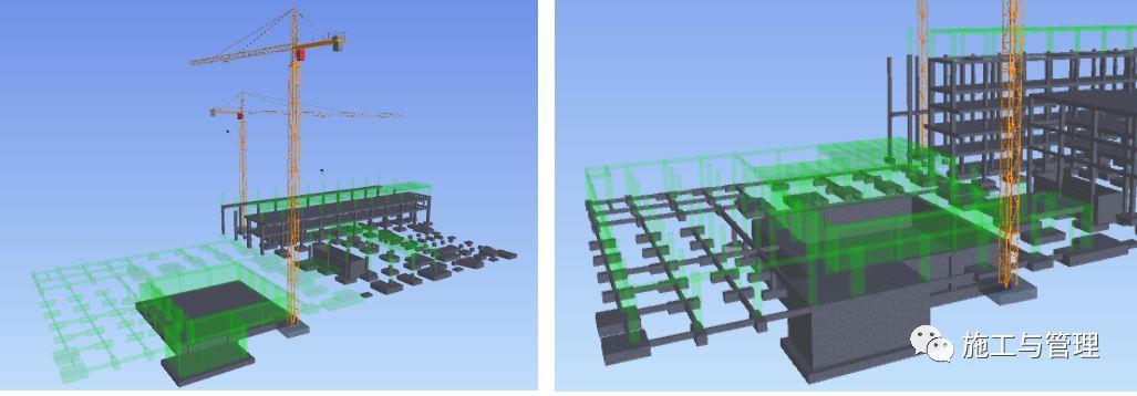 由于初步嘗試使用BIM 技術(shù)進行施工技術(shù)管理工作,目前主要工作仍然是編制實際可行的施工進度計劃,根據(jù)結(jié)構(gòu)三維模型進行了初步建造模擬和部分專業(yè)的管線綜合。