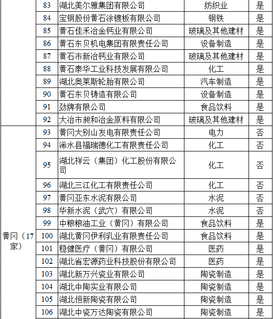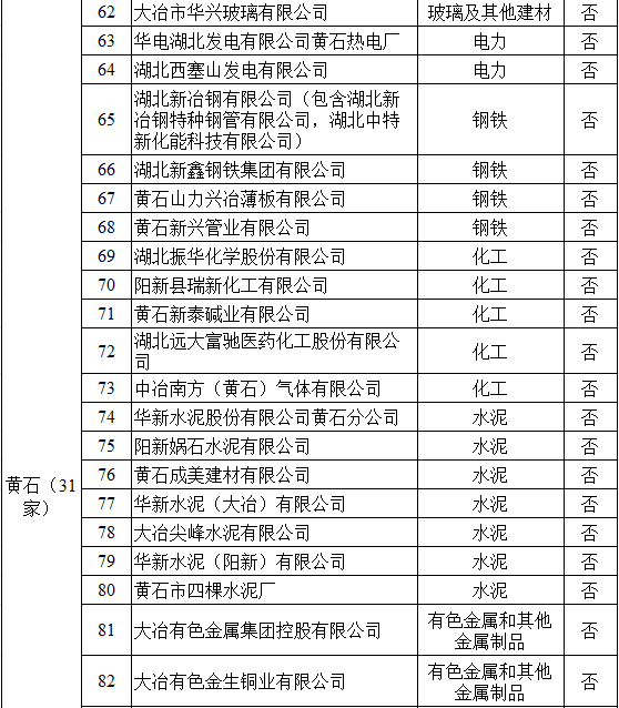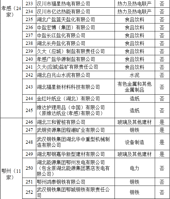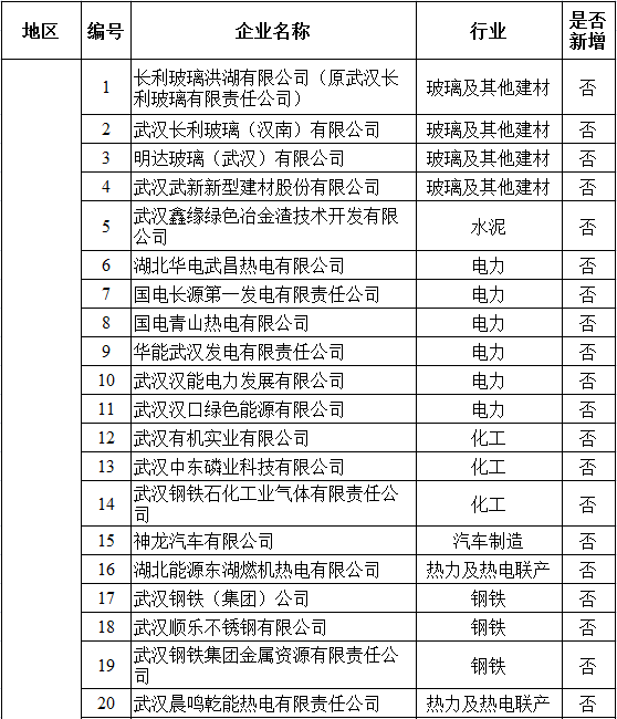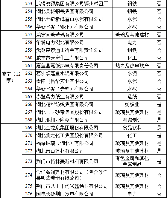 湖北省2017年納入碳排放配額管理企業(yè)清單