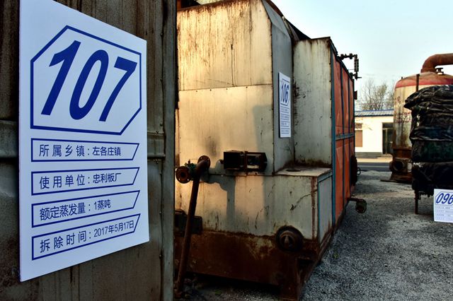 2017年11月22日, 在環(huán)保部召開(kāi)的京津冀“散亂污”企業(yè)整治現(xiàn)場(chǎng)會(huì)上,文安縣的拆除燃煤鍋爐集中存放現(xiàn)場(chǎng)。攝影/章軻