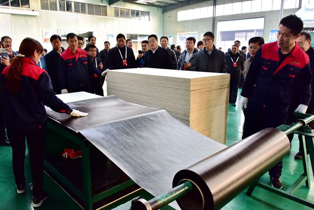 2017年11月22日, 在環(huán)保部召開(kāi)的京津冀“散亂污”企業(yè)整治現(xiàn)場(chǎng)會(huì)上,與會(huì)者參觀文安縣大地木業(yè)公司。攝影/章軻