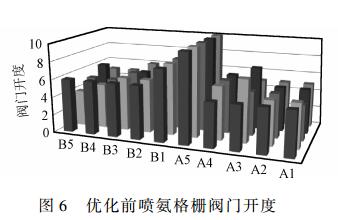 調前、調后噴氨格柵閥門開度分別見圖6、圖7。