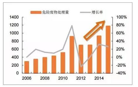 危險(xiǎn)廢物處理量呈快速增長趨勢