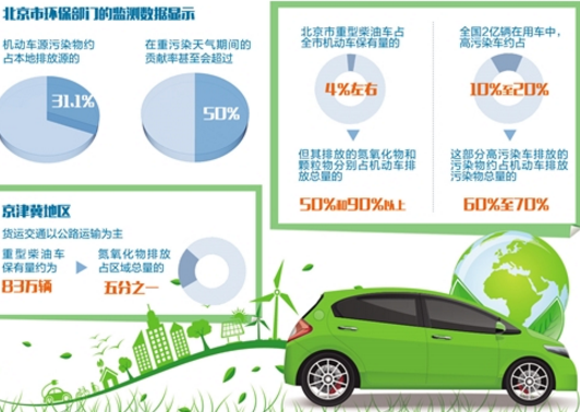 北京市環(huán)保部門的監(jiān)測數(shù)據(jù)顯示,機動車源污染物約占本地排放源的31.1%,在重污染天氣期間甚至?xí)^50%。