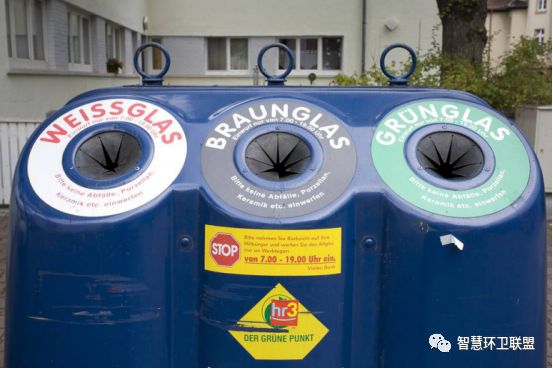 E. 玻璃的投放:德國(guó)設(shè)有專門的玻璃廢品投放點(diǎn),在社區(qū)內(nèi)設(shè)置,將玻璃制品按顏色進(jìn)行投放,分別為透明玻璃、棕色玻璃和綠色玻璃;由于投放時(shí)會(huì)發(fā)出較大的聲響,在夜間此類投放點(diǎn)禁止投放;玻璃瓶的瓶蓋應(yīng)當(dāng)在黃色垃圾桶進(jìn)行投放。