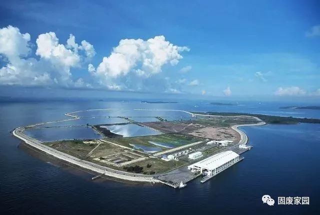實(shí)馬高垃圾填埋場(chǎng)位于新加坡本島以南的海面上。這個(gè)耗資3.6億美元的垃圾填埋場(chǎng)由實(shí)馬高島、錫金島和一條人工海堤組成。人工海堤依據(jù)附近海底的地形而建,它把兩個(gè)小島緊緊地連在一起,并把附近的海域圍成了一個(gè)巨大的圓形區(qū)域,這個(gè)區(qū)域內(nèi)便是垃圾填埋區(qū)。長(zhǎng)約4.4英里(約7公里)的海堤由砂子、石塊和泥土堆砌而成,同時(shí)鋪設(shè)聚乙烯土工膜以防止垃圾場(chǎng)內(nèi)的有害物質(zhì)向海水滲透。焚燒過后的垃圾灰燼將會(huì)被運(yùn)送到這里進(jìn)行填埋處理,上面再鋪上泥土,然后再種上棕櫚樹或者其他植物。