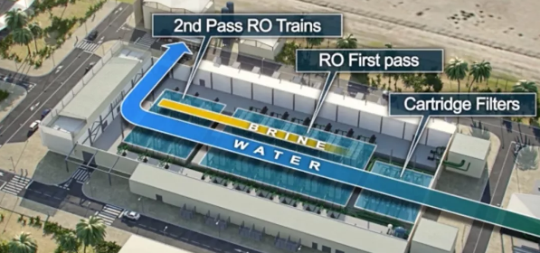 這個(gè)新的海水淡化廠建在一個(gè)現(xiàn)有反滲透海水淡化廠旁邊,占地面積約17.5公頃。太陽能面板組將安裝在距離海水淡化廠1公里以外90公頃的土地上。