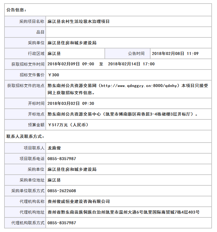 麻江縣農(nóng)村生活垃圾水治理項(xiàng)目采購公告