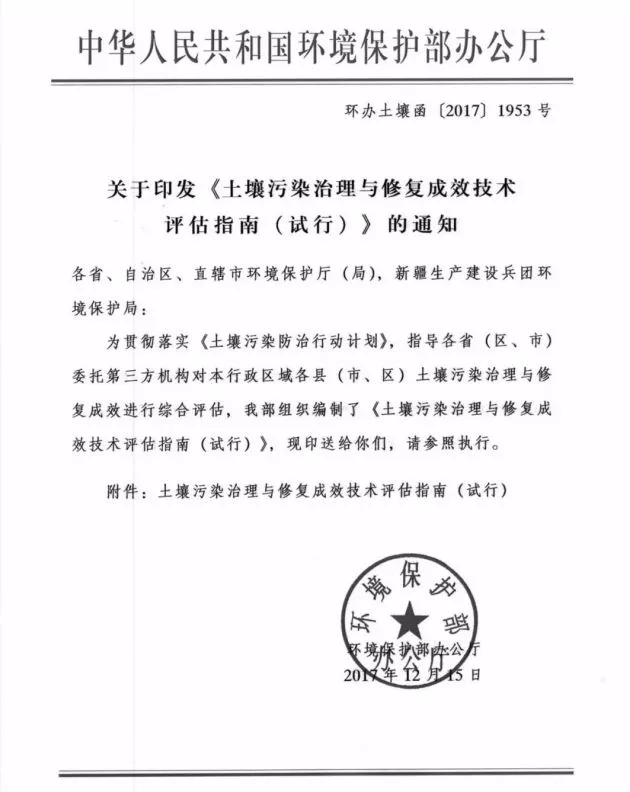 為指導(dǎo)地方委托第三方開展治理與修復(fù)成效評估工作,推動落實(shí)《土壤污染防治行動計(jì)劃》,完成土壤污染治理與修復(fù)目標(biāo)任務(wù),保障農(nóng)產(chǎn)品質(zhì)量和人居環(huán)境安全,根據(jù)《中華人民共和國環(huán)境保護(hù)法》和《土壤污染防治行動計(jì)劃》等法律和文件的規(guī)定,日前,環(huán)保部印發(fā)了《土壤污染治理與修復(fù)成效技術(shù)評估指南(試行)》。