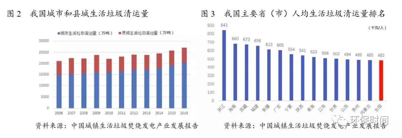 從人均生活垃圾產(chǎn)生量看,2006~2016年,我國城市和縣城人均生活垃圾清運量由475千克增加至486千克。