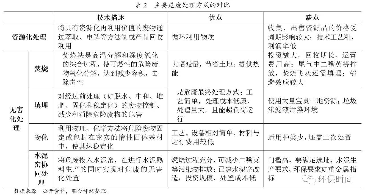 危廢最終處理方式主要還是焚燒與填埋,其中焚燒產(chǎn)生的飛灰、物化后的部分產(chǎn)物也需填埋,填埋容量供不應(yīng)求,目前送去填埋的大多是焚燒飛灰、重金屬污泥等無法繼續(xù)減量的廢物。但填埋方式的占地因素、處置種類、立項審批等缺點都限制了其發(fā)展。目前,廣東、上海等地的危廢焚燒項目都處于滿產(chǎn)狀態(tài),對焚燒的需求量較高。未來危廢無害化產(chǎn)能的增量主要來自于焚燒項目,水泥窯協(xié)同處理僅做補充。