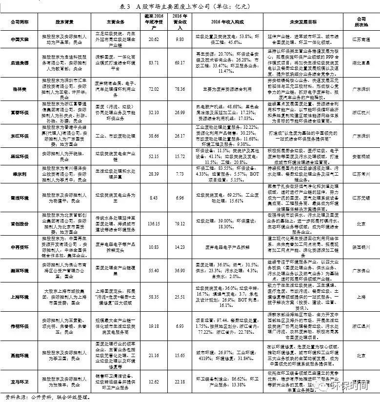 聯(lián)合評級對A股市場從事固廢處理行業(yè)的上市公司進(jìn)行了整理,具體公司情況如下表所示: